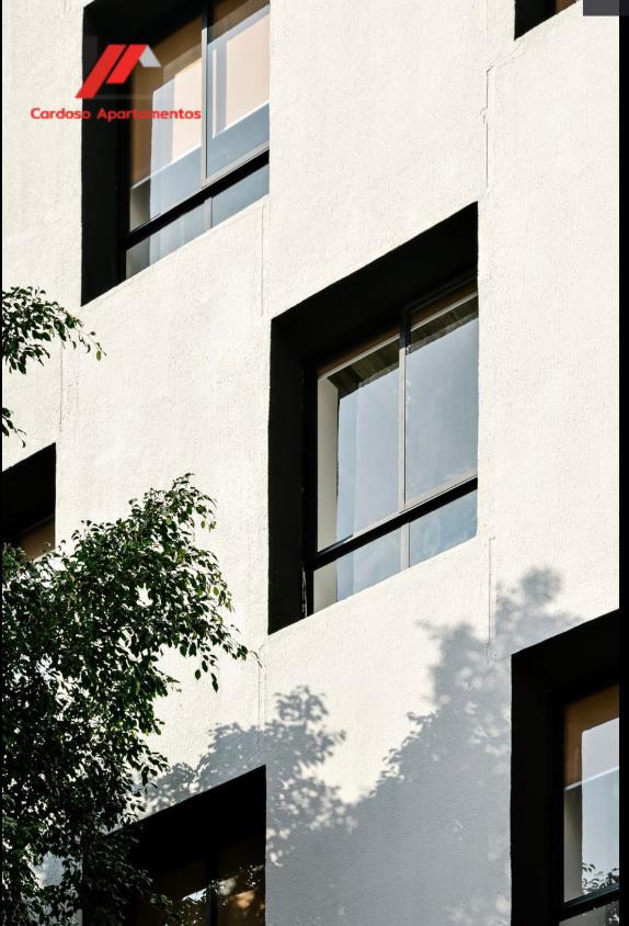 A sala conta com janelões e integração com a cozinha, que é semi mobiliada e equipada com cooktop e geladeira. O banheiro possui chuveiro, box de vidro e armário. O apartamento dispõe ainda de aquecimento elétrico e aceita pet.